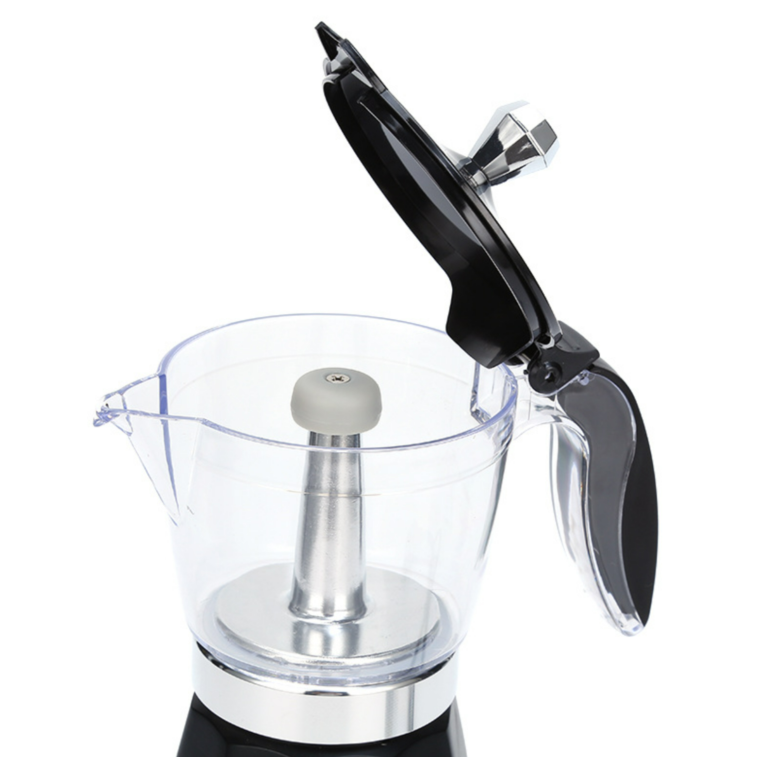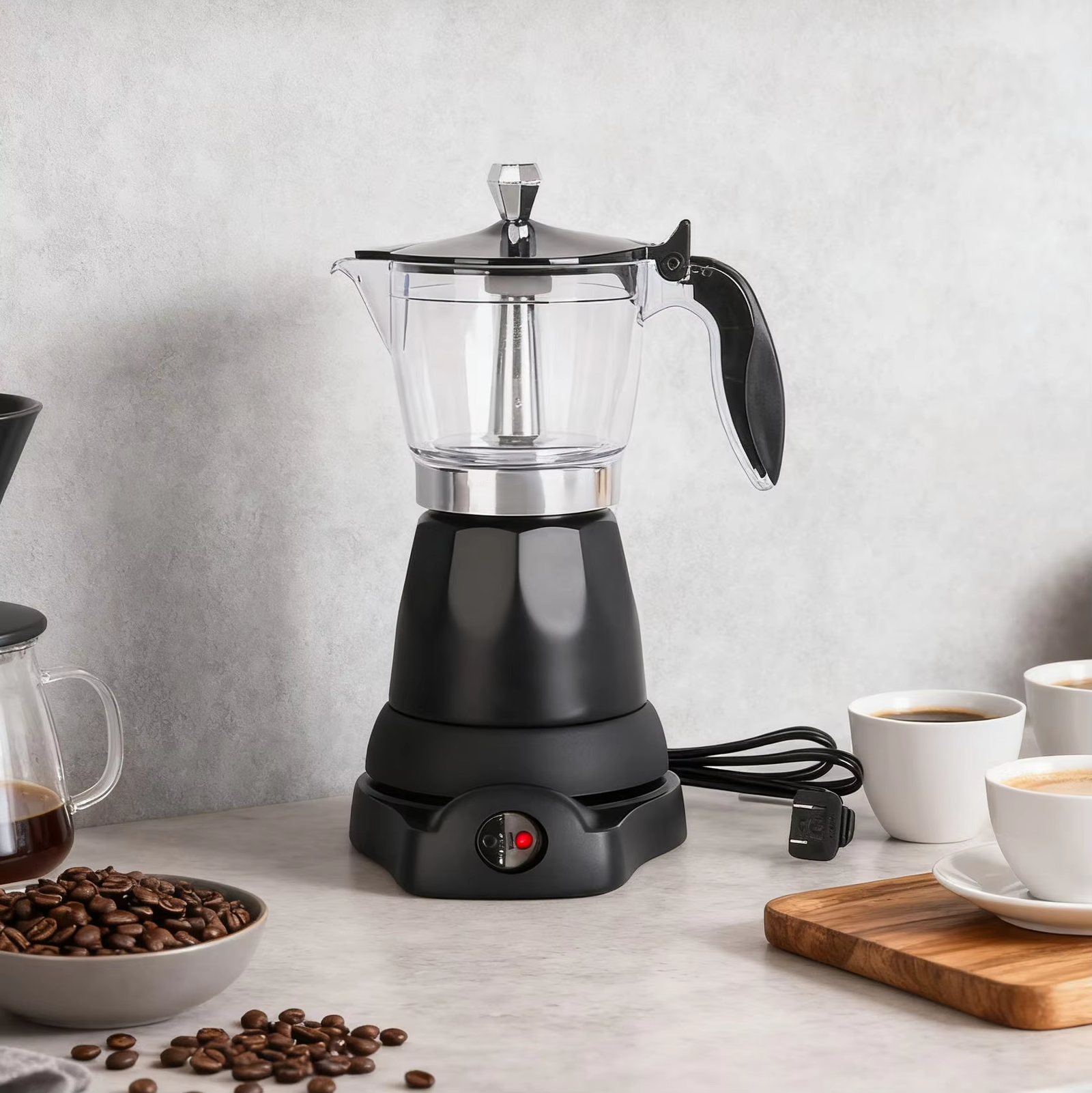 La cafetera espresso eléctrica está diseñada para ofrecer una preparación rápida, segura y cómoda del café estilo espresso. Con capacidad para 6 tazas, es ideal para hogares, oficinas y espacios donde se necesita café listo en pocos minutos.